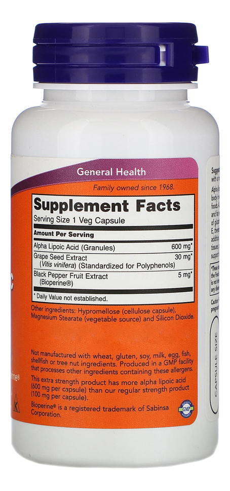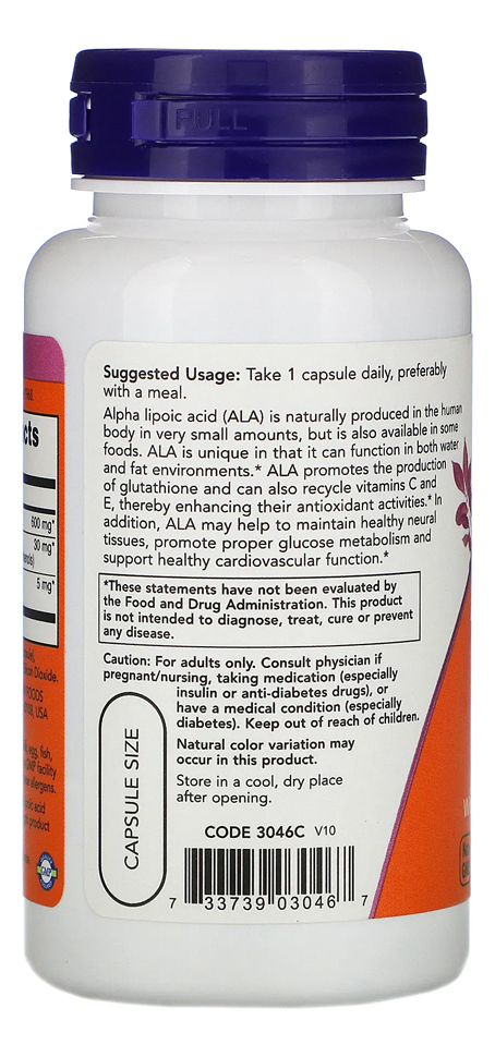 Potente Antioxidante: O Ácido Alfa Lipóico (ALA) da Now Foods, com 600mg por cápsula, é um potente antioxidante conhecido por sua capacidade de neutralizar radicais livres. Este suplemento é uma escolha ideal para quem busca apoiar suas defesas antioxidantes naturais.