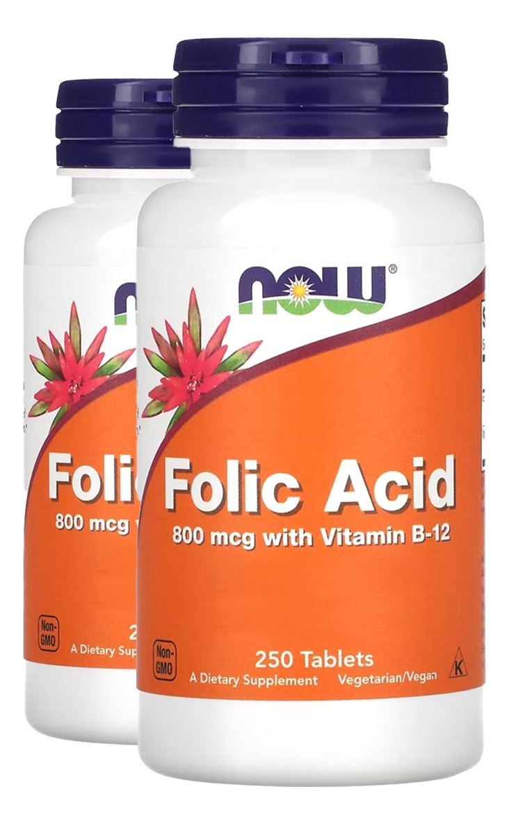 Ácido Fólico 800mcg Vit. B-12 250tab Importado 2un Now Foods