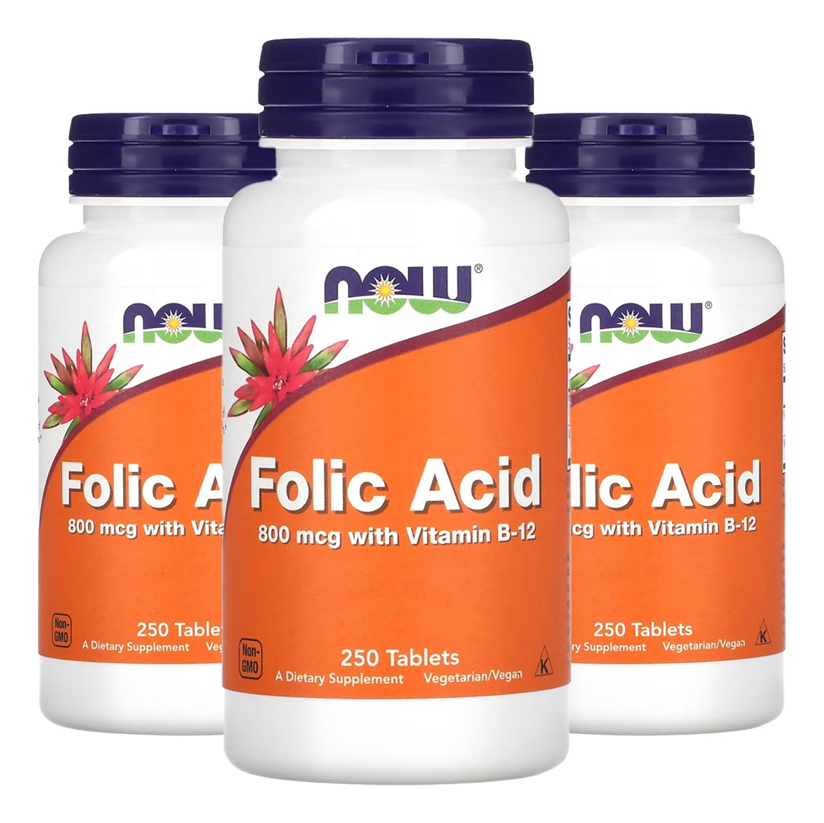 Ácido Fólico 800mcg Vit. B-12 250tab Importado 3un Now Foods