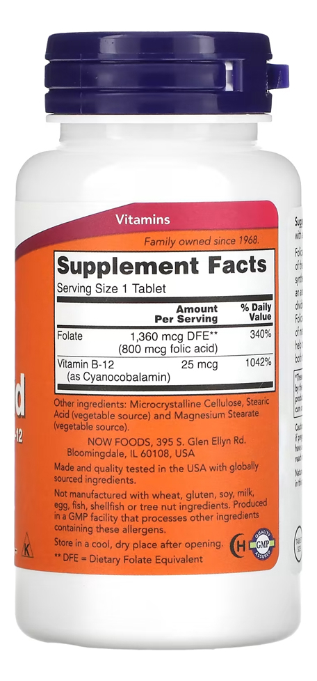 Ácido Fólico e Vitamina B12 800mcg Now Foods 250Tabs – No Brasil