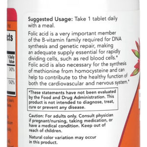 O ácido fólico é uma vitamina do complexo B que auxilia na produção de células novas e na formação de DNA e RNA, componentes genéticos cruciais para todas as células do corpo. Cada tablete deste suplemento é adequado para vegetarianos e veganos;