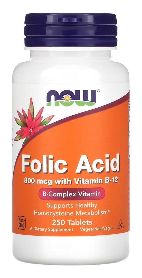 Ácido Fólico e Vitamina B12 800mcg Now Foods 250Tabs – No Brasil