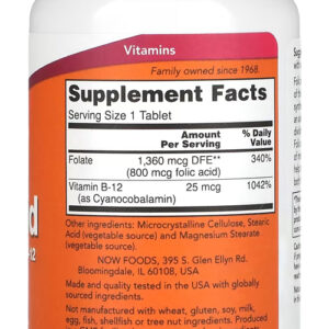 O Ácido Fólico com vitamina B12 da Now Foods fornece 800mcg desta vitamina essencial ao organismo em cada tablet. Este suplemento é projetado para fornecer um suporte nutricional valioso para o seu corpo;