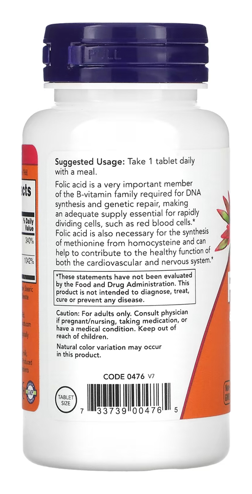 O ácido fólico é uma vitamina do complexo B que auxilia na produção de células novas e na formação de DNA e RNA, componentes genéticos cruciais para todas as células do corpo. Cada tablete deste suplemento é adequado para vegetarianos e veganos;