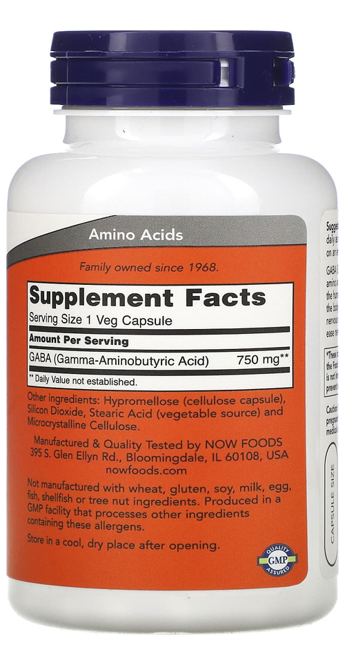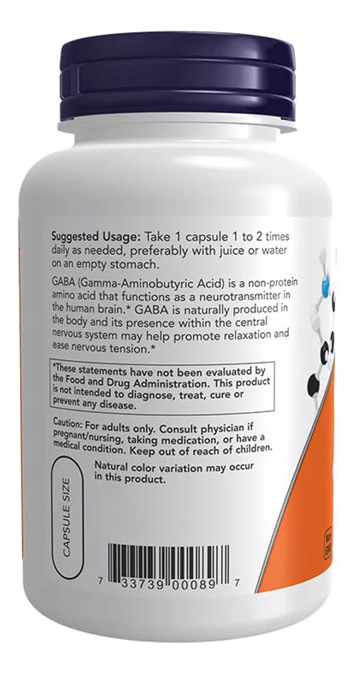 Ácido Gaba 750mg Now Foods 100 Veg Caps – No Brasil