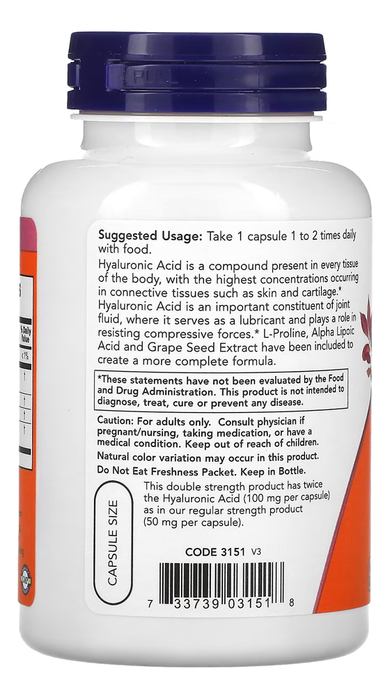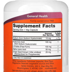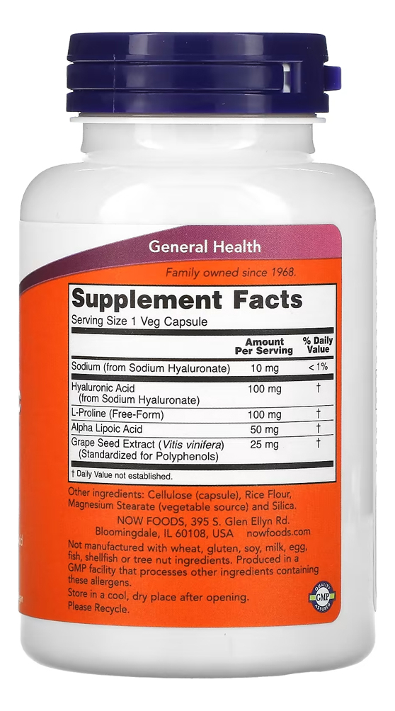 Ácido Hialurônico 100mg Now Foods 120 Cápsulas Produto Importado