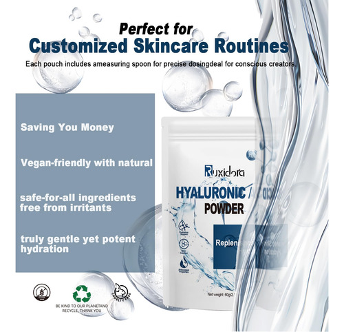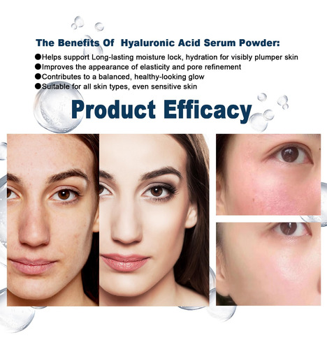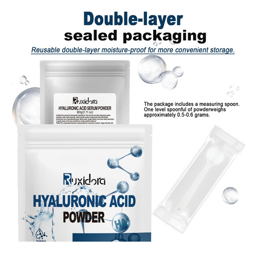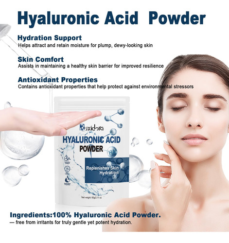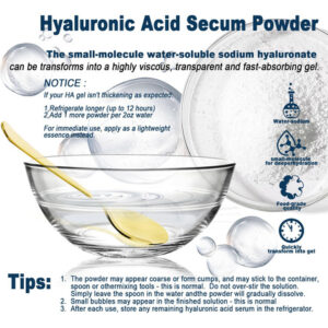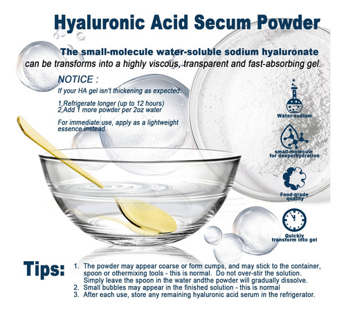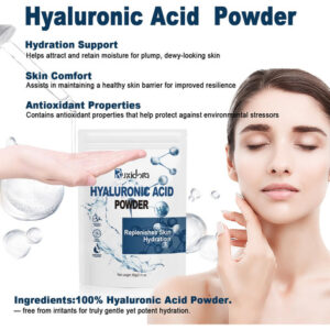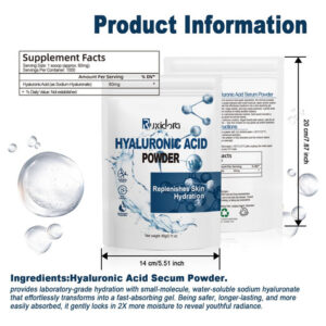 Ácido hialurônico em pó: perfeito para adicionar à sua rotina diária de cuidados com a pele Faça você mesmo para cuidados com a pele: perfeito para criar soros, máscaras e hidratantes faciais personalizados. Fácil de usar e solúvel em água: a textura fina do pó se dissolve rapidamente na água, facilitando a mistura com seus produtos favoritos para a pele. Limpo, seguro e versátil: livre de parabenos, fragrâncias e aditivos artificiais Nosso hialurônico O pó de ácido alurônico é uma adição indispensável à sua rotina de cuidados com a pele. Projetado com baixo peso molecular, ele se dissolve facilmente na água para fornecer hidratação profunda e ajuda a reter a umidade, deixando sua pele macia, suave e revigorada. Ideal para criar suas próprias formulações personalizadas, como soros, cremes e máscaras faciais, este pó vegano e sem crueldade é adequado para todos os tipos de pele. Livre de aditivos artificiais, parabenos e fragrâncias, oferece uma experiência de cuidados com a pele pura e suave. Incorpore esse poderoso ingrediente hidratante em seu regime para uma pele gorda, radiante e com aparência saudável. – Ácido hialurônico em pó: sérum de ácido hialurônico para rosto e pele, fonte de pó de hialuronato de sódio puro, baixo peso molecular, ingredientes de grau cosmético sem preenchimento. Pode ajudar a hidratar a pele seca ou envelhecida e apagar as rugas – Pó de ácido hialurônico para rosto: o pó de ácido hialurônico de alta pureza tem excelente capacidade hidratante, pode reter a umidade, melhorar a elasticidade da pele, reduzir linhas finas e rugas e fazer a pele brilhar com brilho juvenil – pó de ácido hialurônico para pele: usa ácido hialurônico de baixo peso molecular para garantir a absorção eficiente pelo Pele, proporcionando efeitos hidratantes e lubrificantes de longa duração, adequada para pele seca e para todas as pessoas – naturais e seguros: extratos vegetais puros, adequados para todos os tipos de pele, incluindo peles sensíveis. Promove hidratação profunda, hidrata e mantém a elasticidade da pele, mantendo a aparência jovem e saudável – Uso multiuso: feito com ácido hialurônico de alta qualidade e baixo teor de moléculas, esse pó fino se dissolve facilmente na água, tornando-o um ingrediente versátil para formulações de cuidados com a pele. Perfeito para adicionar à sua rotina diária de cuidados com a pele