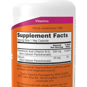 Ácido Pantotênico 500mg Now Foods Vitamina do Complexo B 100 Capsulas Vegetarianas – Importado