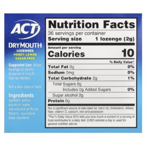 ACT Pastilhas para a Boca Seca com Xilitol Mel e Limão 36 Pastilhas – Act Banho e Cuidados Pessoais Higiene Bucal.
