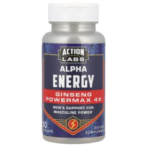 Action Labs Para Homens Alpha Energy Ginseng Powermax™ 4x 50 VegCaps – Action Labs Suplementos Ervas Ginseng Saúde Energia Fórmulas Energéticas.
