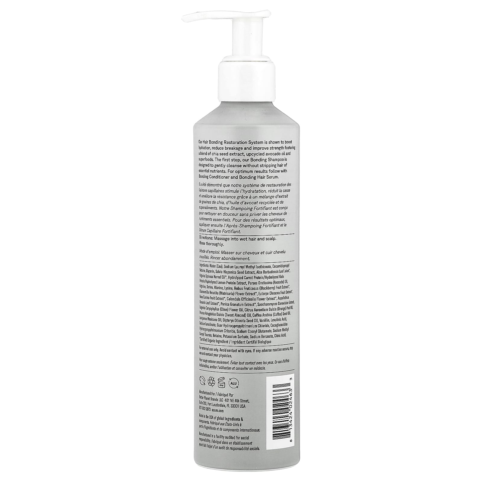 Nosso Sistema de Restauração da Conexão Capilar demonstrou aumentar a hidratação, reduzir a quebra e melhorar a força contendo uma mistura de extrato da semente de chia, óleo de abacate reciclado e superalimentos. Nosso Shampoo Bonding na primeira etapa foi desenvolvido para limpar suavemente, sem retirar os nutrientes essenciais do cabelo. Para melhores resultados, use o Condicionador de Bonding e o Sérum de Bonding Capilar.