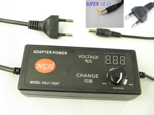 entrada: AC 100V-240V; tensão de saída: DC 3-24V tensão ajustável 5A 5A (60W) máxima; estilo de plugue: cabeça redonda de dois pés
