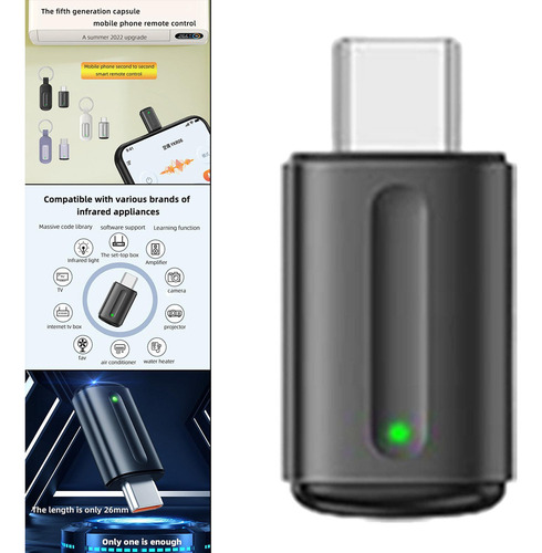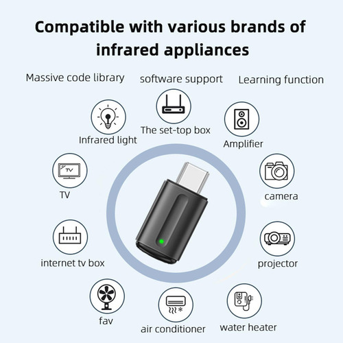 Adaptador De Controle Remoto IR Para Smartphone Tipo C Para Telefone DVD Player Preto