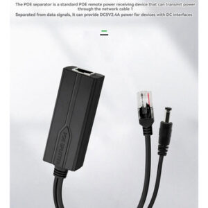 Ele pode converter cabos de rede alimentados por PoE em saídas de alimentação e dados e pode obter a separação de energia e dados.