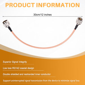 Comprimento e construção ideais: medindo 30 cm/12 polegadas, este cabo é fabricado com um design coaxial RG142 de baixa perda, que inclui uma blindagem dupla e um condutor interno pesado para minimizar a atenuação do sinal e garantir a falta transferência de sinal interrompida. Compatibilidade versátil de aplicativos de RF: Projetado para aplicações de RF de 50 Ohm, bem como