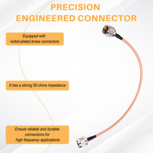 Conector projetado com precisão: este cabo N macho para fêmea apresenta uma impedância robusta de 50 ohms e é equipado com conectores de latão niquelado, garantindo conexões confiáveis e duráveis para aplicações de alta frequência.