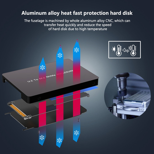 Design de conversor para caber em qualquer painel traseiro U.2 que permita a montagem de SSD U.2 de 2,5 polegadas e rack móvel; estojo inteiro de alumínio para excelente dissipação de calor. 4.