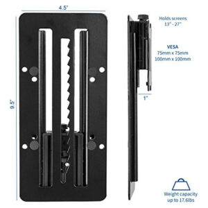 O STAND-VAD3 é um suporte de adaptador VESA que se conecta ao suporte de monitor existente, oferecendo ao monitor mais flexibilidade de ajuste de altura. Esse adaptador dará ao seu monitor uma faixa adicional de ajuste de altura de 7" (3,5" para cima e 3,5" para baixo do centro). O recurso de ajuste sem ferramentas permite que você ajuste a altura do monitor manualmente em um instante. Para redefinir a altura, basta levantar o monitor até o ponto mais alto e colocá-lo na altura desejada. Existe um acolchoamento entre o adaptador e o monitor para ajudar a evitar arranhões e arranhões.