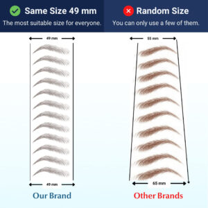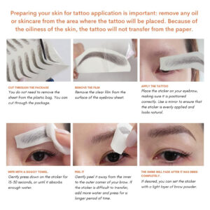 Você receberá 2 folhas, cada uma com 12 pares. 24 pares no total. Procurando uma maneira rápida e fácil de definir suas sobrancelhas? Nossos adesivos de tatuagem de sobrancelha são a solução perfeita! Esses adesivos inovadores são feitos com um adesivo especial que adere à sua pele e permanece no lugar o dia todo. Com nossos adesivos de tatuagem de sobrancelha, você pode obter sobrancelhas perfeitamente moldadas em apenas alguns minutos. Basta escolher o adesivo que combina com o formato das sobrancelhas e aplicá-lo na pele. O resultado é uma sobrancelha natural e definida que dura o dia todo. Aqui estão apenas alguns dos benefícios de nossos adesivos de tatuagem de sobrancelha: Uma das melhores características de nossos adesivos de tatuagem de sobrancelha é que eles são todos do mesmo tamanho, o que os torna adequados para todos. Ao contrário de outras marcas que vêm em uma variedade de tamanhos, você pode usar todos os pares em nosso conjunto. Nossos adesivos de tatuagem de sobrancelha também são à prova d'água, então você pode usá-los no chuveiro ou na piscina sem problemas. A tatuagem é feita com uma combinação de pinceladas e sobrancelhas em pó, criando uma aparência natural com um toque de maquiagem. A segurança é importante para nós, e é por isso que nossos adesivos de tatuagem de sobrancelha não são tóxicos e não causam danos à sua pele. Cada adesivo pode ser usado por 1 a 3 dias e o brilho desaparecerá quando estiver completamente seco. Nossa única folha de adesivos de tatuagem de sobrancelha pode ser usada por até um mês, e cada folha contém 12 pares. Um único par pode durar vários dias, então você aproveitará bastante nosso produto. A duração da tatuagem depende de: Colocação Atividade diária A química única da sua pele Não perca mais tempo preenchendo as sobrancelhas todas as manhãs. Obtenha as sobrancelhas perfeitas que você sempre quis com nossos adesivos de tatuagem de sobrancelha. Peça o seu hoje e desfrute de sobrancelhas perfeitamente definidas todos os dias! – Eles são todos do mesmo tamanho, o que os torna adequados para todos. Ao contrário de outras marcas que vêm em uma variedade de tamanhos, você pode usar todos os pares do nosso conjunto. – As tatuagens de sobrancelha são a melhor solução para pessoas que têm sobrancelhas finas ou sem sobrancelhas. Eles são fáceis de usar e você pode colocá-los completamente e esquecê-los! – Eles são à prova d'água e ficam bem no chuveiro e na piscina. Eles são à prova de suor e manchas, para que você possa desfrutar de um dia inteiro de lindas sobrancelhas de forma simples. – Nossos adesivos são feitos com um adesivo especial que adere à pele e permanece no lugar o dia todo. – Nossos adesivos de tatuagem de sobrancelha vêm em um conjunto de 2 folhas, com cada folha contendo 12 pares. Isso é um total de 24 pares. Cada adesivo pode ser usado por 1 a 3 dias e o brilho desaparecerá quando estiver completamente seco.