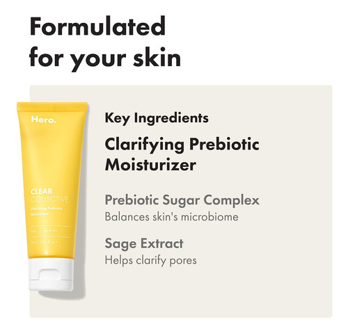 Hidratante prebiótico clarificador Hero Cosmetics Clear Collective: hidratante facial diário que purifica, suaviza e suaviza a pele (70 ml)