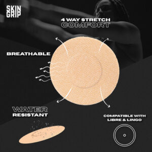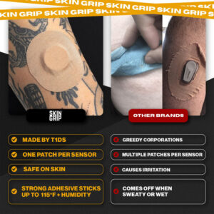 Individuals living with diabetes struggle to keep their glucose monitors inserted in their skin while living active lifestyles. Skin Grip makes strong adhesive tapes to keep monitors secured to the skin so that people with diabetes can participate in their favorite activities with peace of mind. Diabetes doesnt hold you back, and we believe that your CGM – Long-Lasting, 100% Freestyle Libre 1 & 2 Compatible Patch: Hold your CGM device firmly to your skin and extend its life without causing it to fall off or hang loose; designed to withstand external and physical force, our diabetic patch enables you to do all the things you care about without your sensor detaching from your skin (this patch is NOT compatible with Libre 3) – Waterproof & Sweatproof, All-Weather Protection: Equipped with quick-dry technology, our CGM sensor patches feature a waterproof and sweatproof adhesive that provides peace of mind while exercising, showering, or swimming – Comfortable, Skin-Friendly & Pre-Cut to Fit Your Device: Our breathable diabetic overpatches are made of 100% medical-grade adhesive that is latex-free, zinc oxide-free, and hypoallergenic for zero irritation; live without limits while wearing your patch – 4-Way Stretch, Easy Application: Our patches are ingeniously split into 4 parts for a seamless application; for best results, prep skin with an adhesive barrier solution like Skin Tac, apply the sensor, and apply the patch before bed to allow the adhesive to set well before any activities – Commitment to Quality: We use only superior materials and adhere to high standards of quality and safety so you can work hard and play hard without affecting your blood sugar testing