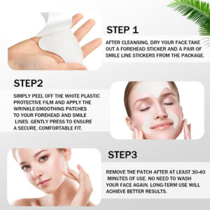 Desfrute de um regime abrangente de cuidados com a pele que visa o aparecimento de rugas de vários ângulos com o conjunto de adesivos suavizantes de rugas de 15 pares. Com adesivos para rugas na testa e almofadas removedoras Smile Line, esse sistema de ação dupla atua para firmar, apertar e dar volume à pele visivelmente, proporcionando uma tez mais jovem e refinada. Infundidos com colágeno fortalecedor da pele e extrato calmante de Centella, os adesivos ajudam a reforçar a elasticidade e resiliência naturais da pele, minimizando a aparência de linhas finas e vincos. Enquanto isso, a glicerina e o ácido hialurônico fornecem hidratação intensa e duradoura para uma pele mais lisa e uniforme. Formulados cuidadosamente com ingredientes suaves e não irritantes, os adesivos são adequados para todos os tipos de pele, até mesmo para peles sensíveis. Cada par individual é convenientemente embalado para uso fácil e em qualquer lugar, sempre que você precisar de um refresco rápido para a pele. Recupere uma aparência mais suave e jovem com o conjunto abrangente de adesivos suavizantes de rugas – a solução diária essencial para reduzir visivelmente os sinais de envelhecimento. – Adesivos de ação dupla: o kit inclui adesivos para rugas na testa e almofadas removedoras Smile Line para atingir várias áreas principais. – Ingredientes que preenchem a pele: nossos adesivos para rugas contêm ingredientes como colágeno, extrato de centela asiática, ácido hialurônico, etc. para fornecer hidratação e firmeza profundas. – Fórmula suave e hipoalergênica: cuidadosamente selecionada, não irritante ingredientes tornam esses adesivos de rugas na testa e as almofadas removedoras Smile Line adequados para todos os tipos de pele, até mesmo peles sensíveis. – Fácil de usar: os adesivos para rugas vêm em uma embalagem compacta e portátil, perfeita para uso rápido e fácil em casa, no escritório ou em qualquer lugar. Basta retirar a película plástica branca do adesivo após abrir a embalagem e aplicá-la na pele limpa e seca. – Melhor resultado: permitir pelo menos 30 minutos de uso garante que os ingredientes nutritivos tenham tempo suficiente para penetrar profundamente e aplicar sua mágica de suavização de rugas na pele.