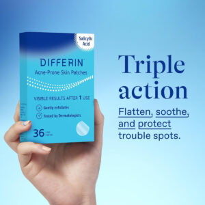 Adesivos de pele Differin propensos à acne para imperfeições em estágio inicial, formulados com ácido salicílico e centela, adesivo poderoso de ação tripla rápido para dia e noite, testado dermatologicamente, 36 unidades — CONTÉM ÁCIDO SALICÍLICO: esfolia os poros para ajudar a reduzir a aparência de imperfeições emergentes. Os adesivos de ácido salicílico funcionam melhor para imperfeições em estágio inicial. – COMBATE IMPERFEIÇÕES EMERGENTES: Ataca os sinais emergentes de uma imperfeição. Contém 36 adesivos em 2 tamanhos diferentes (13,5 mm ou 11 mm). – COMEÇA A FUNCIONAR RAPIDAMENTE: adesivos de ação tripla achatam, acalmam e protegem a área. Corrija a imperfeição para ajudar a evitar mais irritações. – INVISÍVEL ULTRAFINO: fácil de descascar, manchas grandes e pequenas para eliminar qualquer imperfeição emergente. – TECNOLOGIA DE AÇÃO TRIPLA: O ácido salicílico esfolia para ajudar a diminuir a aparência dos pontos problemáticos, enquanto a calmante centella asiática e o salgueiro canadense ajudam a reduzir visivelmente a aparência de vermelhidão. – Para dia e noite: manchas extrafinas são maquiagem amigáveis, à prova d'água e à prova de suor, para que você possa usá-los a qualquer momento – TESTADOS POR DERMATOLOGISTAS: para todos os tipos de pele, incluindo peles com tendência a acne – INGREDIENTES: Copolímero de acrilatos, água, álcool denatado, vinil caprolactama/VP/dimetilaminoetilmetacrilato, PVP, ácido salicílico, extrato de Houttuynia Cordata, ácido sórbico, butilenoglicol, extrato de flor/folha/caule de Epilobium Angustifolium, hidróxido de sódio, fenoxietanol, centenoglicol Extrato de Ella Asiatica, 1,2-hexanodiol, metabissulfito de sódio, extrato de Melaleuca Alternifolia (melaleuca), madecassosídeo