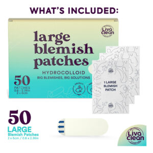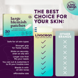 Teste – OVERNIGHT MAGIC – Use esses grandes adesivos para acne no rosto enquanto dorme. Nossos adesivos para espinhas para rosto absorvem óleos na pele e no nariz. Acorde na manhã seguinte e dê uma olhada em seu rosto. – ADAPTA-SE ÀS SUAS NECESSIDADES – Corte as manchas hidrocolóides grandes em um tamanho e formato menores, dependendo da área afetada. Nossos adesivos grandes para espinhas podem ser usados sob máscaras faciais para evitar o uso de máscaras faciais. – COMPATÍVEL – Projetamos nossas tiras de adesivo hidrocolóides para atender usuários com tipos de pele oleosa. Esses grandes adesivos para acne são projetados para grudar em áreas que pequenos adesivos faciais para acne não conseguem cobrir – TAMANHO GRANDE – Nosso adesivo grande para acne foi projetado pensando em erupções cutâneas. As fugas não acontecem em um único local. Capture o acúmulo de sujeira antes que ela se espalhe com nossa grande área de cobertura. – DISCRETO – Todas as nossas manchas grandes de espinhas são transparentes e ótimas para uso noturno. Pare de pegar e esfregar espinhas durante o sono. Acorde sem problemas com o adesivo para espinhas LiveClean. – EMBALAGEM GRAB'n GO – Nossos adesivos grandes para manchas embalados individualmente são projetados para proteção fácil de transportar e em qualquer lugar, fornecendo uma embalagem portátil e descomplicada ao mesmo tempo em que cada um é esterilizado.