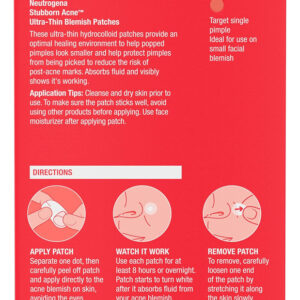 Os adesivos ultrafinos para manchas Neutrogena Stubborn Acne removem as impurezas da pele para ajudar as espinhas estouradas a parecerem menores e mais planas em apenas um uso. Durante os testes clínicos, mais de 90% viram espinhas mais planas no dia seguinte. Ideais para peles com tendência a acne, esses adesivos hidrocolóides de uma marca recomendada por dermatologistas são fáceis de usar e começarão a ficar brancos à medida que absorvem fluidos para mostrar visivelmente que estão funcionando. As manchas ultrafinas e não medicamentosas fornecem um ambiente de cura ideal para ajudar a proteger as espinhas de serem colhidas. Os adesivos que absorvem líquidos, testados contra alergias, têm o tamanho perfeito para combater espinhas únicas e são ideais para uso em pequenas manchas faciais ao longo do queixo, nariz e testa. Para usar, limpe bem a pele e deixe secar. Em seguida, aplique cuidadosamente o adesivo sobre a mancha e deixe agir por oito horas ou durante a noite. Para remover, solte cuidadosamente uma extremidade do adesivo e estique-a lentamente ao longo da pele.