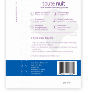 Adesivos faciais para rugas Toute Nuit, fita facial, jato, unissex, linhas de expressão extra grandes e cobertura da testa, 20 adesivos — Inclui 20 adesivos faciais em forma de jato; cobre a área da parte superior da ponte nasal entre as sobrancelhas até o centro das dobras horizontais da testa — Maneira natural e não invasiva de relaxar os músculos faciais subjacentes; achata as rugas profundas e suaviza as linhas finas — Inodoro e hipoalergênico; Não contém aditivos; não caem – os adesivos podem ser reutilizados 2 a 3 vezes; coloque-os em um lençol azul de baixo atrito fornecido após o uso – Recomendado para uso com qualquer hidratante não oleoso; feito nos EUA