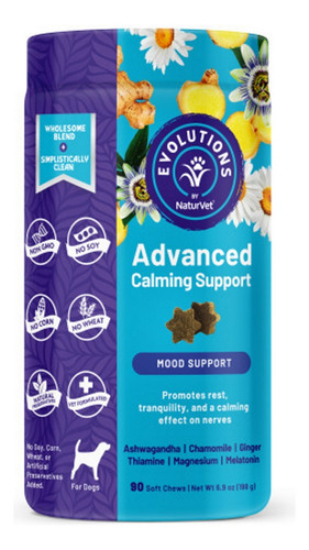 O NaturVet Evolutions Advanced Calming Aid Soft Chews auxilia no descanso, reduz o estresse e auxilia no relaxamento muscular, afetando a dopamina, a serotonina e o calmante neuromuscular. Os soft chews Evolutions apresentam misturas saudáveis de fórmulas avançadas e ingredientes ricos em nutrientes. NaturVet Evolutions Advanced Calming Aid Soft Chews. Apoia o descanso, reduz o estresse e apoia o relaxamento muscular, afetando a dopamina, a serotonina e o calmante neuromuscular. Misturas saudáveis de fórmulas avançadas e ingredientes ricos em nutrientes.