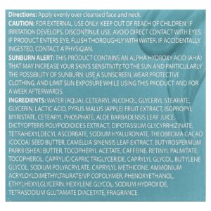 Alerta para queimadura de sol: este produto contém ácido alfa-hidroxi (AHA), que pode aumentar a sensibilidade da pele ao sol e, principalmente, a possibilidade de queimaduras solares. Use protetor solar, roupas protetoras e limite a exposição ao sol, enquanto estiver usando este produto e durante uma semana após o uso.