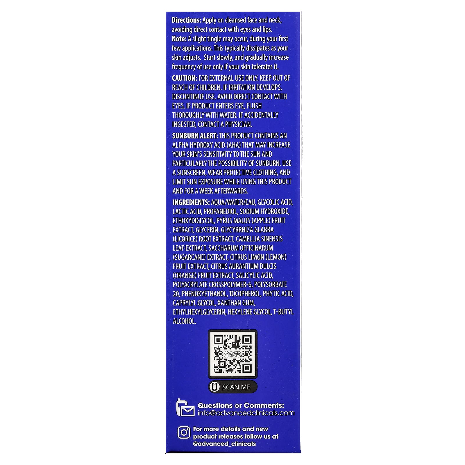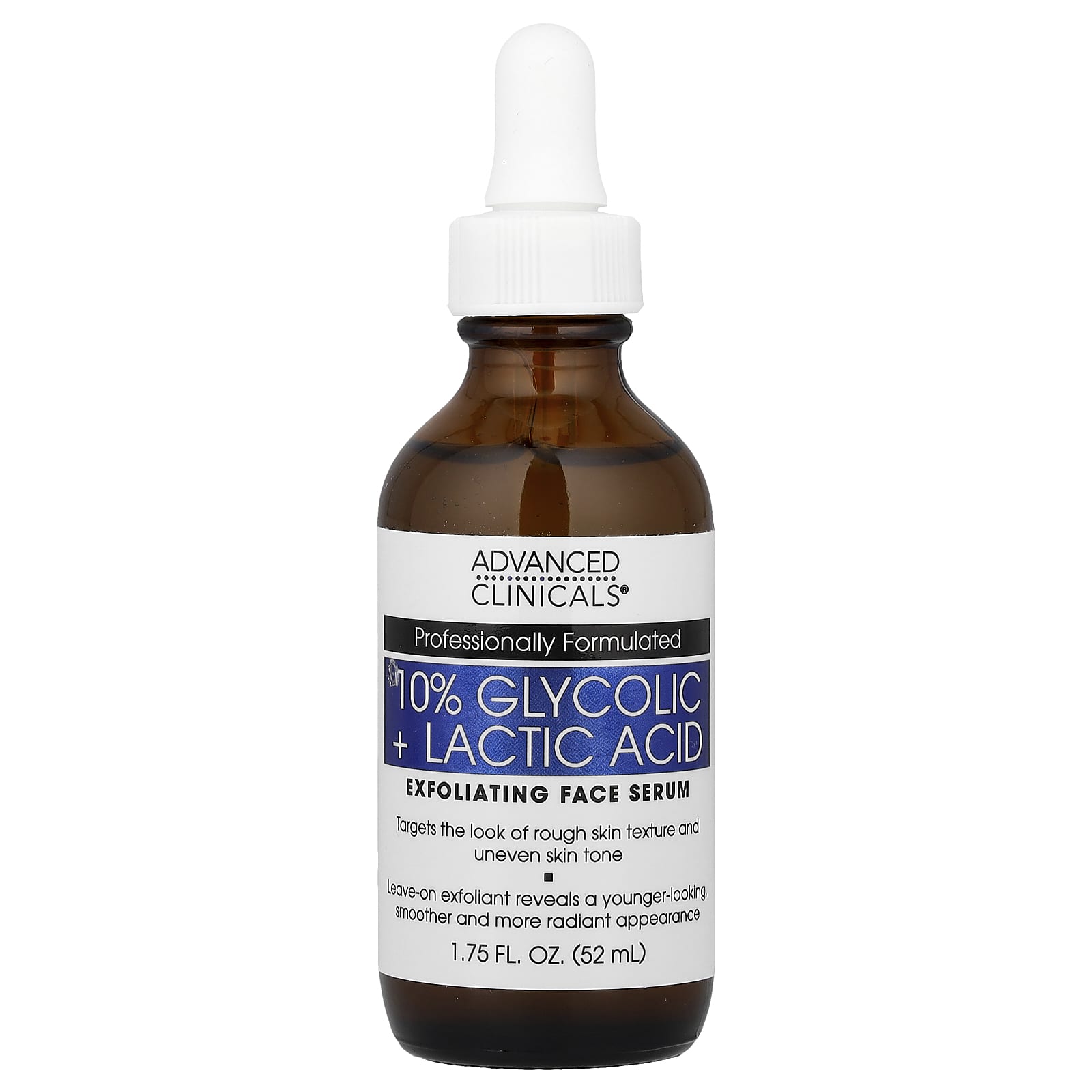 Advanced Clinicals Sérum 10% de Ácido Glicólico + Ácido Láctico 52 ml (175 fl oz) – Advanced Clinicals Beleza Beleza por Ingrediente Cuidado para a pele com ácido glicólico Tratamentos e Séruns Séruns Faciais.