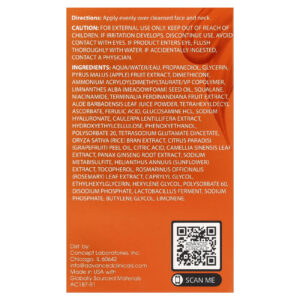 Água/aqua/eau, propanediol, glicerina, extrato da fruta de Pyrus malus (maçã), dimeticona, ammonium acryloyldimethyltaurate/vp copolymer, óleo da semente de Limnanthes alba (meadowfoam), esqualano, nicotinamida, extrato da fruta de Terminalia ferdinandiana, pó do suco da folha de Aloe barbadensis, tetrahexidecil ascorbato, ferulic acid, cloridrato de glicosamina, hialuronato de sódio, extrato de Caulerpa lentillifera, hietelose, fenoxietanol, polissorbato 20, tetrasodium glutamate diacetate, extrato do farelo de Oryza sativa (arroz), óleo da casca de Citrus paradisi (toranja rosa), ácido cítrico, extrato da folha de Camellia sinensis, extrato da raiz de Panax ginseng, metabissulfito de sódio, extrato de Helianthus annuus (girassol), tocoferol, extrato da folha de Rosmarinus officinalis (alecrim), caprylyl glycol, ethylhexylglycerin, hexylene glycol, polissorbato 60, fosfato dissódico, fermento de lactobacillus, fosfato de sódio, butilenoglicol, limoneno.