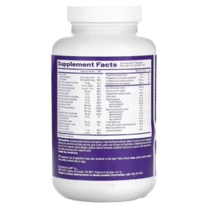 Fosfato dicálcico e tricálcico, Cápsula (hipromelose), dextrina (tapioca, milho) tocoferóis, goma de celulose, palmitato de ascorbila, sacarose, goma arábica, óleo de palma e coco, hiprolose, maltodextrina (milho), amido (soja, milho, arroz, tapioca), dióxido de silício, estearil fumarato de sódio, amido modificado, glicina, ácido cítrico, óleo de oliva, talco, ascorbato de sódio e ácido L-aspártico.