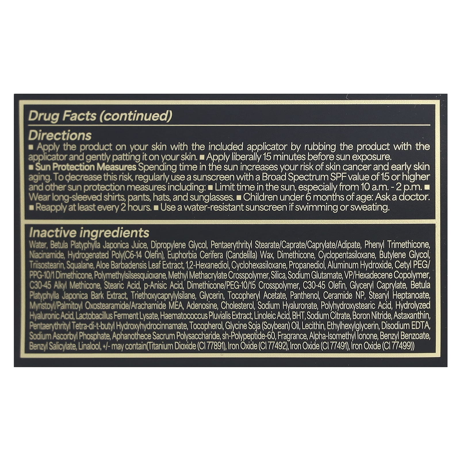 | Água, suco de Betula platyphylla japonica, dipropilenoglicol, pentaeritril stearate/caprate/caprylate/adipate, fenil trimeticona, nicotinamida, poli-hidrogenada (olefina c6-14), cera de Euphorbia cerifera (candelilla), dimeticona, decametilciclopentasiloxano, butilenoglicol, triisostearina, esqualano , extrato da folha de Aloe barbadensis, 1,2-hexanediol, decametilciclohexasiloxano, propanediol, hidróxido de alumínio, cetyl peg/ppg-10/1 dimethicone, polymethylsilsesquioxane, methyl metacrylate crosspolymer, dióxido de silício, glutamato de sódio, copolímero vp/hexadelene, c30-45 alkyl methicone , ácido esteárico, ácido p-anísico, dimeticona/polímero peg-10/15, olefina c30-45, caprylate de glicerila, extrato da casca de Betula platyphylla japonica, triethoxycaprylylsilane, glicerina, acetato de tocoferol, pantenol, ceramide np, stearyl heptanoate, myristoyl/palmitoyl oxostearamida/arachamide mea, adenosina, colesterol, hialuronato de sódio, ácido polihidroxiesteárico, ácido hialurônico hidrolisado, lisado de fermento de Lactobacillus, Haematococcus pluviali extrato de s, ácido linoleico, bht, citrato de sódio, nitrato de boro, astaxantina, pentaerythrityl tetra-di-t-butyl hydroxyhydrocinnamate, tocoferol, óleo de Glycine soja (soja), lecitina, ethylhexylglycerin, edetato dissódico, sodium ascorbyl phosphate, polissacarídeo Aphanothece sacrum, sh-polypeptide-60, fragrância, alpha-isomethyl ionone, benzyl benzoate, benzyl salicylate, linalol, +/- pode conter(dióxido de titânio (CI 77891), óxido de ferro (CI 77492), óxido de ferro (CI 77491), óxido de ferro (CI 77499)). | |