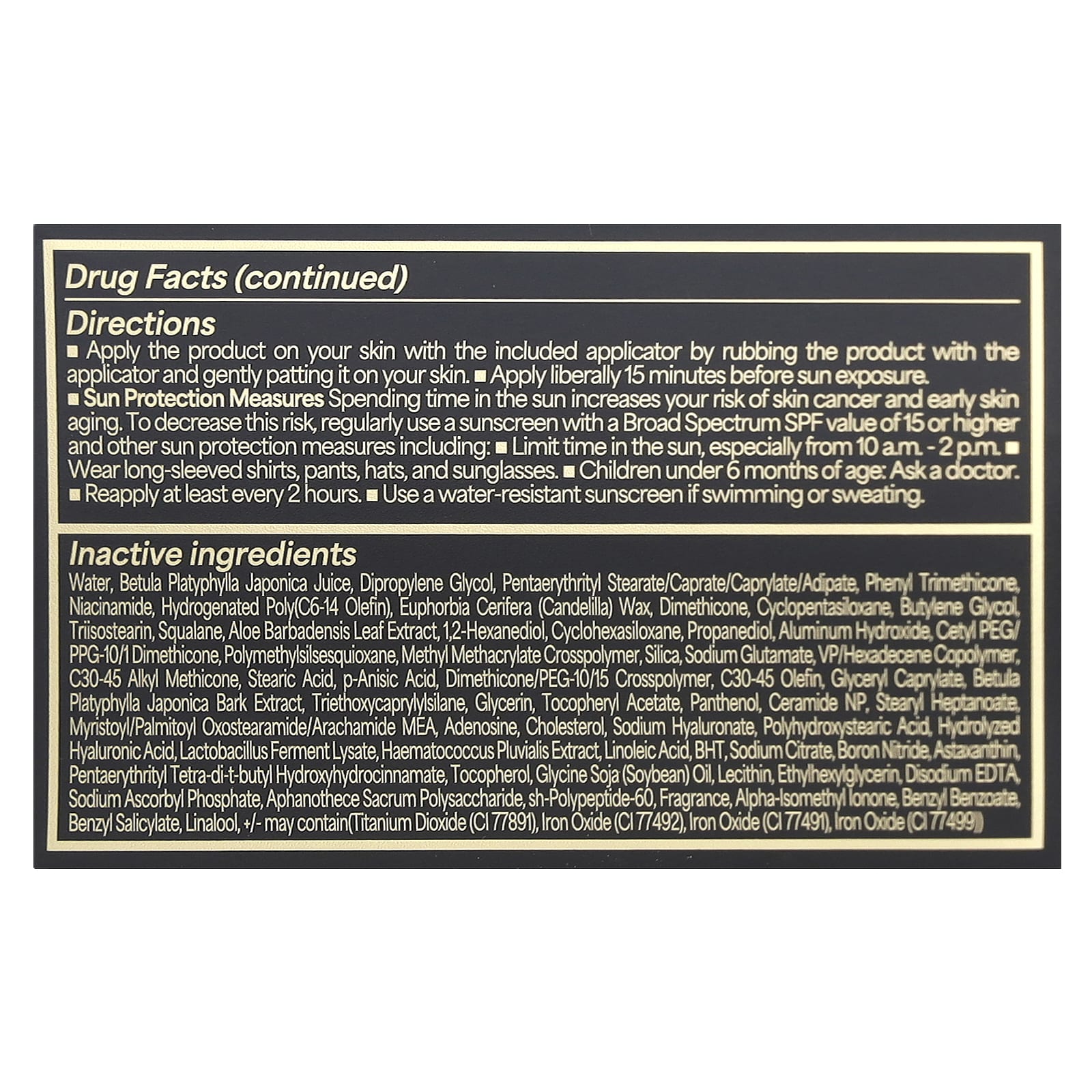 | Água, suco de Betula platyphylla japonica, dipropilenoglicol, pentaeritril stearate/caprate/caprylate/adipate, fenil trimeticona, nicotinamida, poli-hidrogenada (olefina c6-14), cera de Euphorbia cerifera (candelilla), dimeticona, decametilciclopentasiloxano, butilenoglicol, triisostearina, esqualano , extrato da folha de Aloe barbadensis, 1,2-hexanediol, decametilciclohexasiloxano, propanediol, hidróxido de alumínio, cetyl peg/ppg-10/1 dimethicone, polymethylsilsesquioxane, methyl metacrylate crosspolymer, dióxido de silício, glutamato de sódio, copolímero vp/hexadelene, c30-45 alkyl methicone , ácido esteárico, ácido p-anísico, dimeticona/polímero peg-10/15, olefina c30-45, caprylate de glicerila, extrato da casca de Betula platyphylla japonica, triethoxycaprylylsilane, glicerina, acetato de tocoferol, pantenol, ceramide np, stearyl heptanoate, myristoyl/palmitoyl oxostearamida/arachamide mea, adenosina, colesterol, hialuronato de sódio, ácido polihidroxiesteárico, ácido hialurônico hidrolisado, lisado de fermento de Lactobacillus, Haematococcus pluviali extrato de s, ácido linoleico, bht, citrato de sódio, nitrato de boro, astaxantina, pentaerythrityl tetra-di-t-butyl hydroxyhydrocinnamate, tocoferol, óleo de Glycine soja (soja), lecitina, ethylhexylglycerin, edetato dissódico, sodium ascorbyl phosphate, polissacarídeo Aphanothece sacrum, sh-polypeptide-60, fragrância, alpha-isomethyl ionone, benzyl benzoate, benzyl salicylate, linalol, +/- pode conter(dióxido de titânio (CI 77891), óxido de ferro (CI 77492), óxido de ferro (CI 77491), óxido de ferro (CI 77499). | |