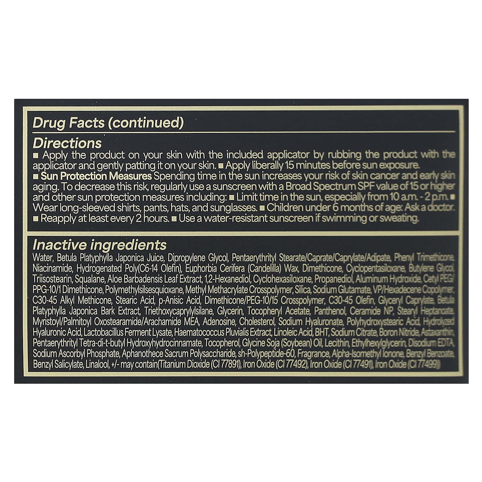 | Água, suco de Betula platyphylla japonica, dipropilenoglicol, pentaeritril stearate/caprate/caprylate/adipate, fenil trimeticona, nicotinamida, poli-hidrogenada (olefina c6-14), cera de Euphorbia cerifera (candelilla), dimeticona, decametilciclopentasiloxano, butilenoglicol, triisostearina, esqualano , extrato da folha de Aloe barbadensis, 1,2-hexanediol, decametilciclohexasiloxano, propanediol, hidróxido de alumínio, cetyl peg/ppg-10/1 dimethicone, polymethylsilsesquioxane, methyl metacrylate crosspolymer, dióxido de silício, glutamato de sódio, copolímero vp/hexadelene, c30-45 alkyl methicone , ácido esteárico, ácido p-anísico, dimeticona/polímero peg-10/15, olefina c30-45, caprylate de glicerila, extrato da casca de Betula platyphylla japonica, triethoxycaprylylsilane, glicerina, acetato de tocoferol, pantenol, ceramide np, stearyl heptanoate, myristoyl/palmitoyl oxostearamida/arachamide mea, adenosina, colesterol, hialuronato de sódio, ácido polihidroxiesteárico, ácido hialurônico hidrolisado, lisado de fermento de Lactobacillus, Haematococcus pluviali extrato de s, ácido linoleico, bht, citrato de sódio, nitrato de boro, astaxantina, pentaerythrityl tetra-di-t-butyl hydroxyhydrocinnamate, tocoferol, óleo de Glycine soja (soja), lecitina, ethylhexylglycerin, edetato dissódico, sodium ascorbyl phosphate, polissacarídeo Aphanothece sacrum, sh-polypeptide-60, fragrância, alpha-isomethyl ionone, benzyl benzoate, benzyl salicylate, linalol, +/- pode conter(dióxido de titânio (CI 77891), óxido de ferro (CI 77492), óxido de ferro (CI 77491), óxido de ferro (CI 77499)). | |