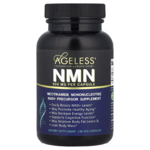 Ageless Foundation Laboratories NMN 500 mg 90 Cápsulas Vegetais – Ageless Foundation Laboratories Suplementos Vitaminas Vitamina B Vitamina B3 (Niacina) NAD+ (Nicotinamida Adenina Dinucleotídeo) Mononucleotídeo de Nicotinamida (NMN).