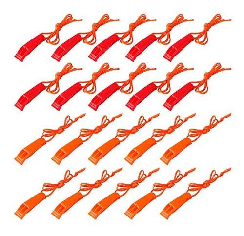 20 assobios de segurança e sobrevivência, laranja e vermelho, 10 peças em cada cor.
