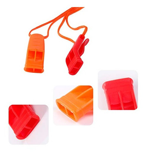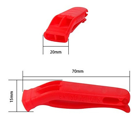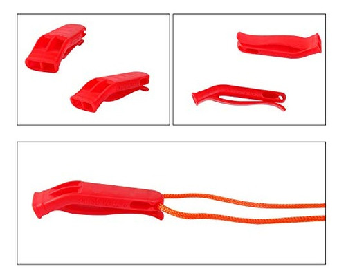 Estes apitos estão em 2 cores conspícuas, vermelho e laranja, muito brilhante, pode atrair a atenção dos outros fora, ajudá-lo a ser encontrado facilmente.
