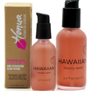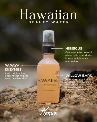 – Experimente a Hawaiian Beauty Water, nossa poção de brilho preferida para revelar uma pele saudável e brilhante. – Enzimas de mamão, casca de salgueiro, hibisco e k? (Açúcar havaiano) trabalham juntos para esfoliar suavemente a pele, deixando sua parte subjacente brilhar… transparecer!