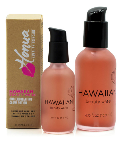 Enzimas de mamão, hibisco e k? (Açúcar havaiano) trabalham juntos para esfoliar suavemente a pele, revelando um brilho saudável. Depois de anos estudando a pele dos clientes, nosso fundador Kapua se preocupou com os efeitos a longo prazo dos esfoliantes físicos. No entanto, ela reconheceu a necessidade de esfoliação e criou o Hawaiian Beauty Water, que se tornou um dos nossos produtos mais populares. Todo mundo quer uma pele brilhante e esta poção é suave o suficiente para as peles mais sensíveis.