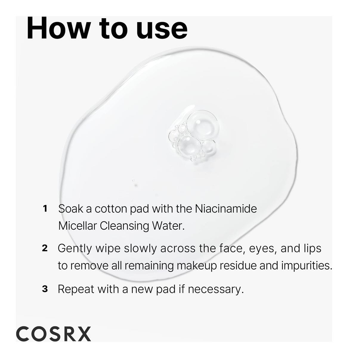 Água de limpeza micelar ALL-IN-1 de uma etapa: limpador micelar calmante e hidratante que remove a maquiagem sem irritação, deixando a pele úmida e revigorada sem nenhum resíduo de maquiagem. – Limpador clinicamente verificado: água de limpeza não irritante testada clinicamente com o pH ideal para uma pele saudável e hidratada. – Ingredientes principais: Formulada com niacinamida e zinco PCA, esta água de limpeza micelar ajuda a controlar a oleosidade e pele problemática e protege a pele de bactérias causadoras de acne. – Como usar: molhe uma almofada de algodão com niacinamida de baixo pH Água de limpeza micelar e limpe suavemente as áreas com maquiagem. Limpe lentamente para remover todos os resíduos de maquiagem e impurezas. Não esfregue a pele. Repita se necessário. – Sem perfume e desenvolvida especialmente para peles sensíveis: esta água de limpeza micelar é livre de produtos químicos agressivos e contém ingredientes calmantes poderosos, como madecassosídeo e alatoína, perfeitos para pessoas com pele sensível.