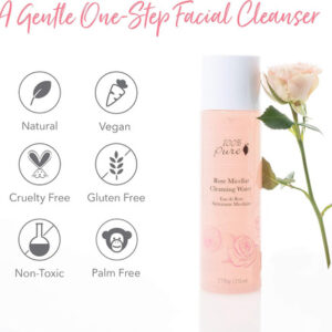 Nossa água de limpeza micelar é um limpador multifuncional conveniente que é capaz de remover maquiagem e acúmulo de óleo, sem precisar enxaguar. Esta fórmula contém suspensões de pequenas moléculas de óleo chamadas micelas para retirar as impurezas da pele, enquanto a água as remove a cada limpeza. Nossa adição de água de rosas garante que você fique com a pele hidratada e acalmada depois.