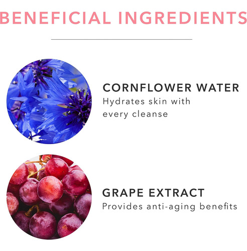 • HIDRATE SUA PELE ‘ Águas florais calmantes de rosa e centáurea hidratam a pele em cada limpeza, tornando este limpador ideal para todos os tipos de pele.