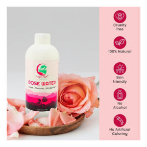 Tonificação: Após a limpeza, água de rosas como toner. Você pode fazer isso embebendo um algodão com água de rosas e passando-o suavemente no rosto. Isso ajuda a equilibrar o pH da pele, fechar os poros e prepará-la para outras etapas.