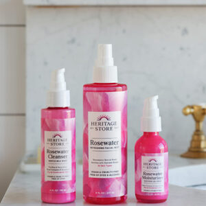 Dois ingredientes versáteis para refrescar, hidratar e melhorar a pele e o humor. Ótima para todos os tipos de pele, nossa névoa facial Rosewater favorita acalma e suaviza com rosa damascena, enquanto a água Vor-Mag recarrega e energiza sua pele e ajuda a melhorar seu humor. Desde o seu lançamento, a Heritage Store Rosewater conquistou seguidores fiéis e um apelido divertido de O.G. das águas de rosas. Use de dia ou de noite para refrescar e despertar a pele, ou antes do seu hidratante favorito para hidratação extra. Pulverize após a maquiagem para fixá-la e, em seguida, durante todo o dia para mantê-la fresca. Em seguida, borrife água de rosas no cabelo para aumentar a suavidade e um perfume incrível. Também é ótimo para cabelos! Dicas privilegiadas: mantenha a água de rosas na geladeira para melhorar o refresco. Pulverize por toda a sala para um tratamento calmante de aromaterapia, no carro para obter um aroma incrível ou antes de uma sessão de meditação ou ioga para ajudar a acalmar o corpo e a mente. Nossa água de rosas é formulada com o mínimo de ingredientes, por isso é boa para você e para o planeta. É feito sem corantes ou álcool, é vegano, livre de crueldade e embalado em garrafas plásticas recicladas de PCR (resina pós-consumo). Procure também: agua de rosas, agua de rosas para la cara hidratante, bruma de rosas. Garantido que contém menos de 20 ppm de etanol. – The Original Rosewater Um campeão de vendas há mais de 50 anos, nosso spray Rosewater é o refrescante perfeito para a pele. Use-o durante todo o dia para hidratar e melhorar a pele e o humor. – Reawaken Your Skin A rosa damascena e suaviza, enquanto nossa exclusiva água Vor-Mag recarrega e energiza seu humor. – Less is More Clean. Fórmula para todos os tipos de pele, feita com o mínimo de ingredientes e sem parabenos, ftalatos ou sulfatos. – Your Beauty Go-To Pulverize após a maquiagem para fixá-la e após a hidratação zero para hidratação extra. Em seguida, passe no cabelo para refrescar e adicionar um aroma incrível, ótimo também para cabelos! – Boa para as pessoas e o planeta Feita sem corantes ou álcool, nossa água de rosas é vegana, livre de crueldade e embalada em garrafas plásticas recicladas de resina pós-consumo (PCR) ecológicas. Além disso, como todos os produtos da Heritage Store, ele vem com uma garantia de devolução do dinheiro em 60 dias. Garantia de conter menos de 20 ppm de etanol.