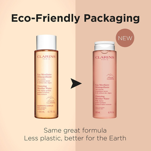 Essa água micelar suave contém ingredientes naturais, incluindo genciana dourada orgânica calmante e erva-cidreira orgânica e extrato purificador de moringa.