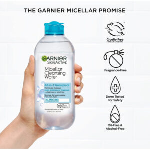 Palavras-chave do público-alvo: água micelar, removedor de maquiagem, água micelar para maquiagem à prova dágua, removedor de maquiagem à prova dágua, pele sensível, sem álcool, sem fragrância, sem óleo, limpeza facial, removedor de maquiagem suave, removedor de maquiagem para olhos, maquiagem de longa duração, maquiagem à prova dágua, Garnier SkinActive, cuidados com a pele, limpeza profunda, remova impurezas gravatas, removedor de maquiagem natural, produto para peles sensíveis, limpeza sem óleo